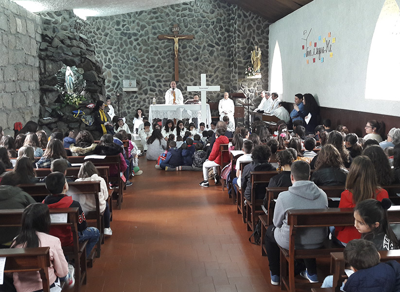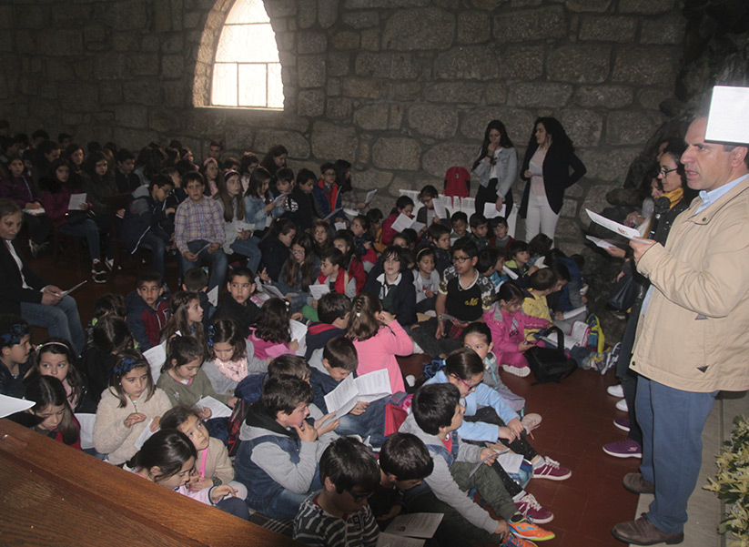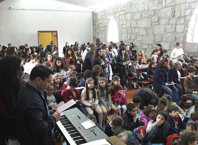 A Eucaristia, conduzida pelo P. Tozé, dinâmica e envolvente, foi pontuada de momentos de reflexão apropriados aos mais novos, que os levavam, de forma simples, compreensível, e até lúdica, a tomar consciência do significado da Páscoa para cada um de nós e para o Povo de Deus a que todos pertencemos; era impressionante a atenção e interesse com que até os pequeninos dos primeiros anos seguiram todo o desenrolar da celebração e participavam nos cânticos!