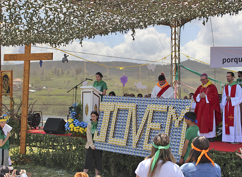 Depois rezamos a Oração de Envio, onde cantámos o hino da Jornada da Juventude 2018, e onde o senhor bispo disse onde ia ser a Jornada para o próximo ano de 2019, que será em Sernancelhe.