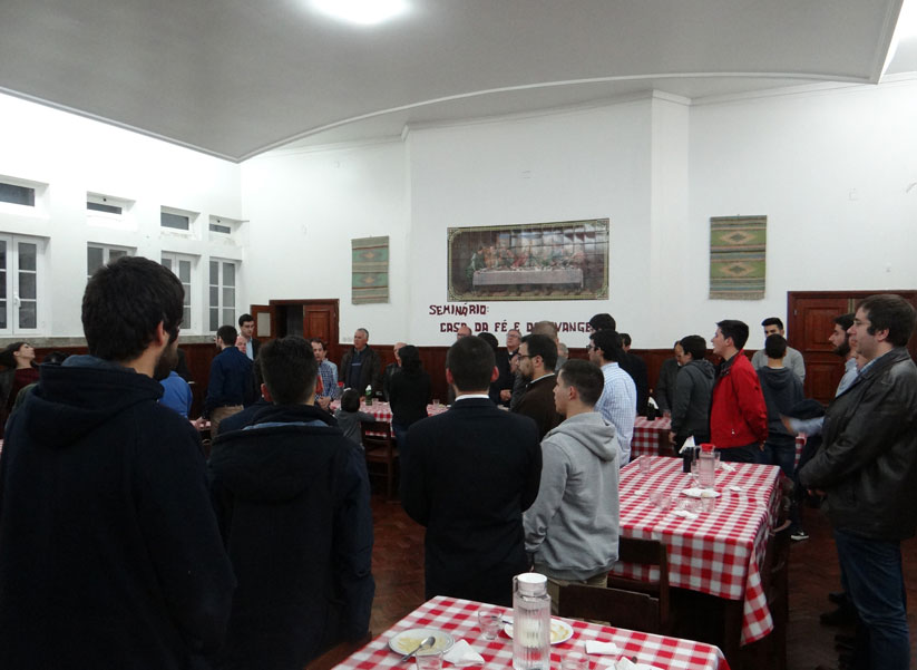 Por fim, e para concluir a noite, houve um momento lúdico entre a comunidade e os pré-seminaristas. Depois do acolhimento festivo por parte da comunidade, o pré-seminário desenrolou-se durante o sábado e domingo. No sábado, o dia começou com a oração litúrgica de laudes e missa. Neste dia, destacaram-se as ações de formação e encontros, assim como o passeio ao Santuário Nossa Senhora da Lapa, seguido de um agradável lanche e oração do terço na Paróquia de Vila da Ponte. Na chegada, o grupo de pré-seminaristas já se movia pelo Seminário de forma bem familiar e próxima aos seminaristas do SML, a qual nos permitiu assistirmos mais uma vez à ação de Deus, tornando-nos testemunhas do seu chamamento.