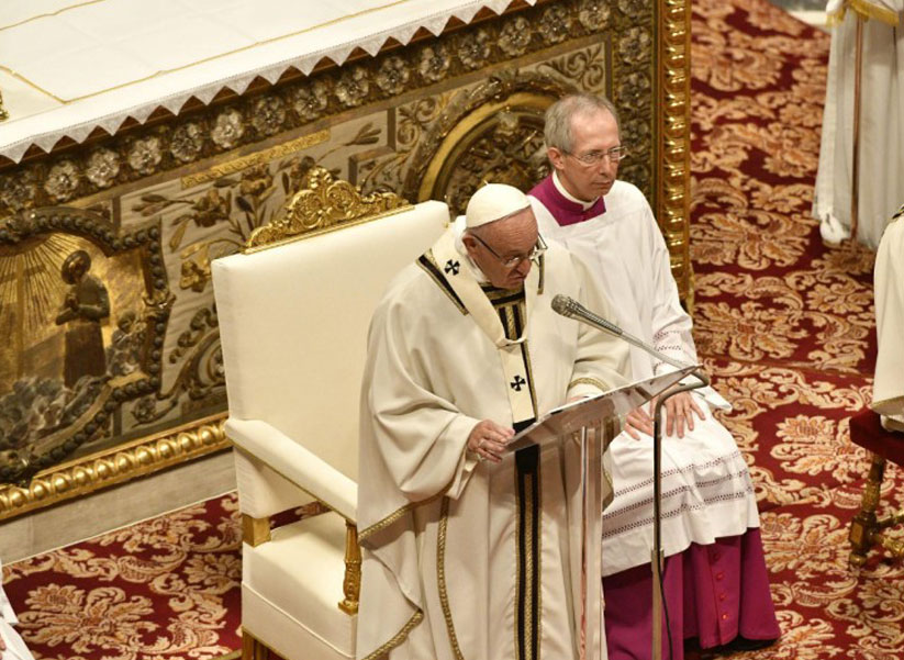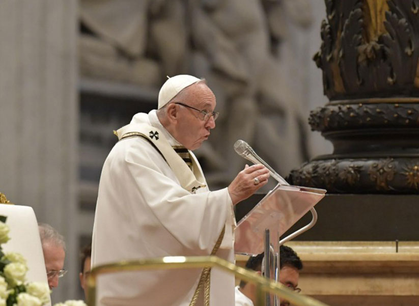A segunda ação: em plena noite, Jesus encoraja. Vai ter com os Seus, submersos na escuridão, caminhando «sobre o mar» (Mt 14, 25). Na realidade, tratava-se de um lago; mas naquele tempo o mar, com a profundidade dos seus abismos tenebrosos, evocava as forças do mal. Por outras palavras, Jesus vai ao encontro dos Seus, calcando os inimigos malignos do homem. Tal é o significado deste sinal: não uma manifestação celebrativa de força, mas a revelação, que nos é feita, da certeza tranquilizadora de que Jesus, só Jesus, vence os nossos grandes inimigos: o diabo, o pecado, a morte, o medo. Hoje, Ele diz também a nós: «Tranquilizai-vos! Sou Eu! Não temais!» (14, 27).