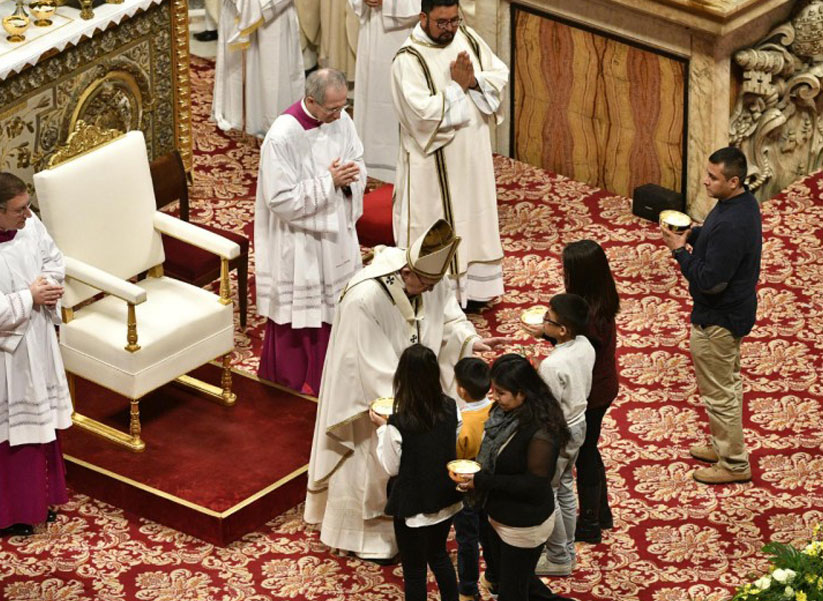Perante a dignidade humana espezinhada, muitas vezes fica-se de braços cruzados ou então abanam-se os braços, impotentes diante da força obscura do mal. Mas o cristão não pode ficar de braços cruzados, indiferente, nem de braços a abanar, fatalista! Não... O crente estende a mão, como Jesus faz com ele. Junto de Deus, o grito dos pobres encontra guarida, mas em nós? Temos olhos para ver, ouvidos para escutar, mãos estendidas para ajudar? «Nos pobres, o próprio Cristo como que apela em alta voz para a caridade dos seus discípulos» (Ibid., 88). Pede-nos para O reconhecermos em quem tem fome e sede, é forasteiro e está privado de dignidade, doente e encarcerado (cf. Mt 25, 35-36).