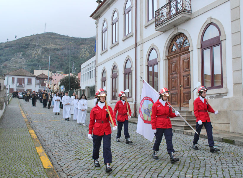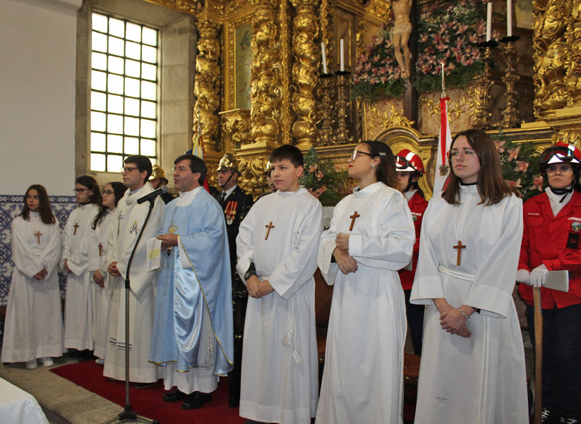 O corpo de Bombeiros, perfilado na nave central, preparava-se para participar na celebração festiva da Eucaristia. Do coro irrompe um cântico sublime na voz suave duma jovem, cântico esse dedicado a Maria, Mãe de Jesus: “AVÉ MARIA”.