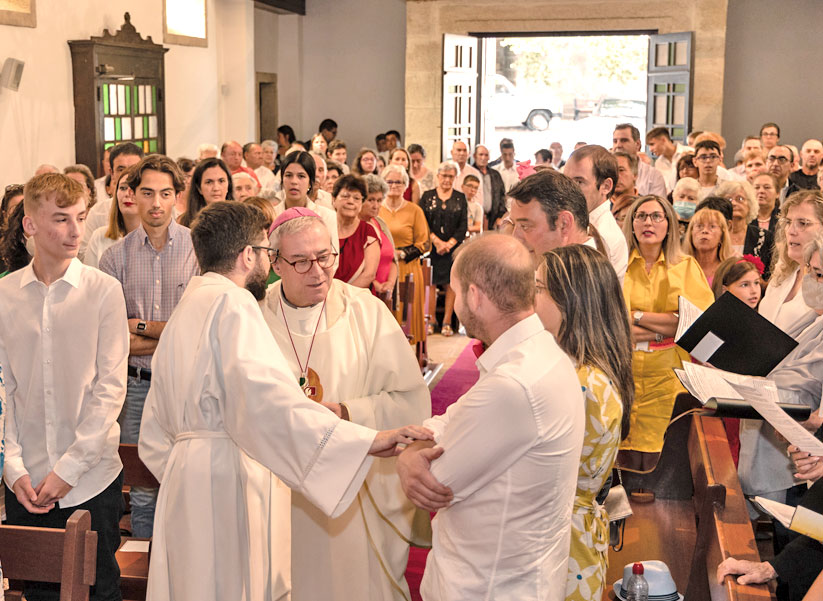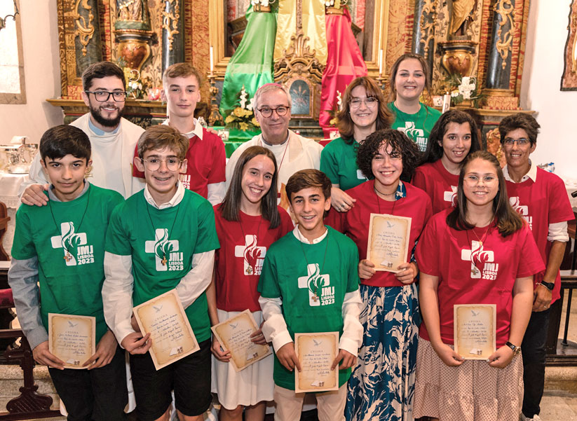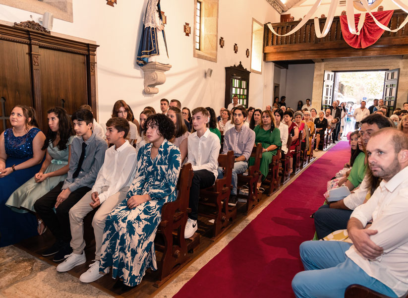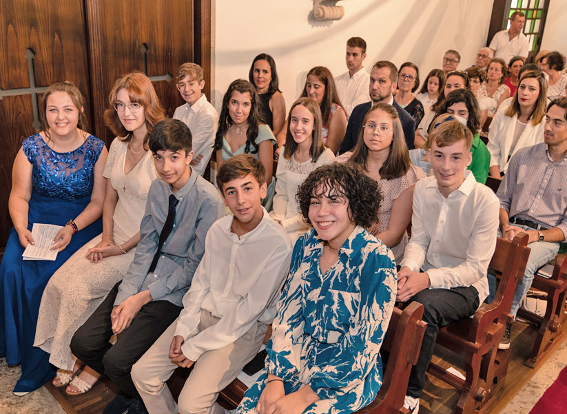 Terminada a celebração, o Senhor Bispo manifestou a sua gratidão pela forma carinhosa como foi recebido. O Pároco relembrou os 10 neo-confirmados que “o sacramento do Crisma não é o sacramento do pisga-te” e que esta comunidade paroquial e a Igreja conta com eles, com os seus sorrisos e criatividade, com a sua presença e colaboração, com o seu testemunho cristão no estilo de vida modelado pela forma de ser que Jesus nos mostrou e nos pediu para seguir. Foi-lhes ofertada pela paróquia, juntamente com o diploma do Crisma e o Crucifixo onde estão inscritos os dons do Espírito Santo, uma t-shirt das Jornadas Mundiais da Juventude e o desejo do Pároco de que este grupo seja uma espécie de ‘Povo Eleito’, por meio do qual chegue a outros jovens a vontade de conhecer melhor Jesus e em 2023 se encontrarem com o Santo Padre e milhares de jovens cristãos do mundo inteiro na cidade de Lisboa. O Pároco convidou os jovens a vestirem a t-shirt da JMJ para uma fotografia de grupo e a nunca a tirar antes de agosto de 2023: mesmo que a dispam do corpo não a dispam do pensamento e do coração.